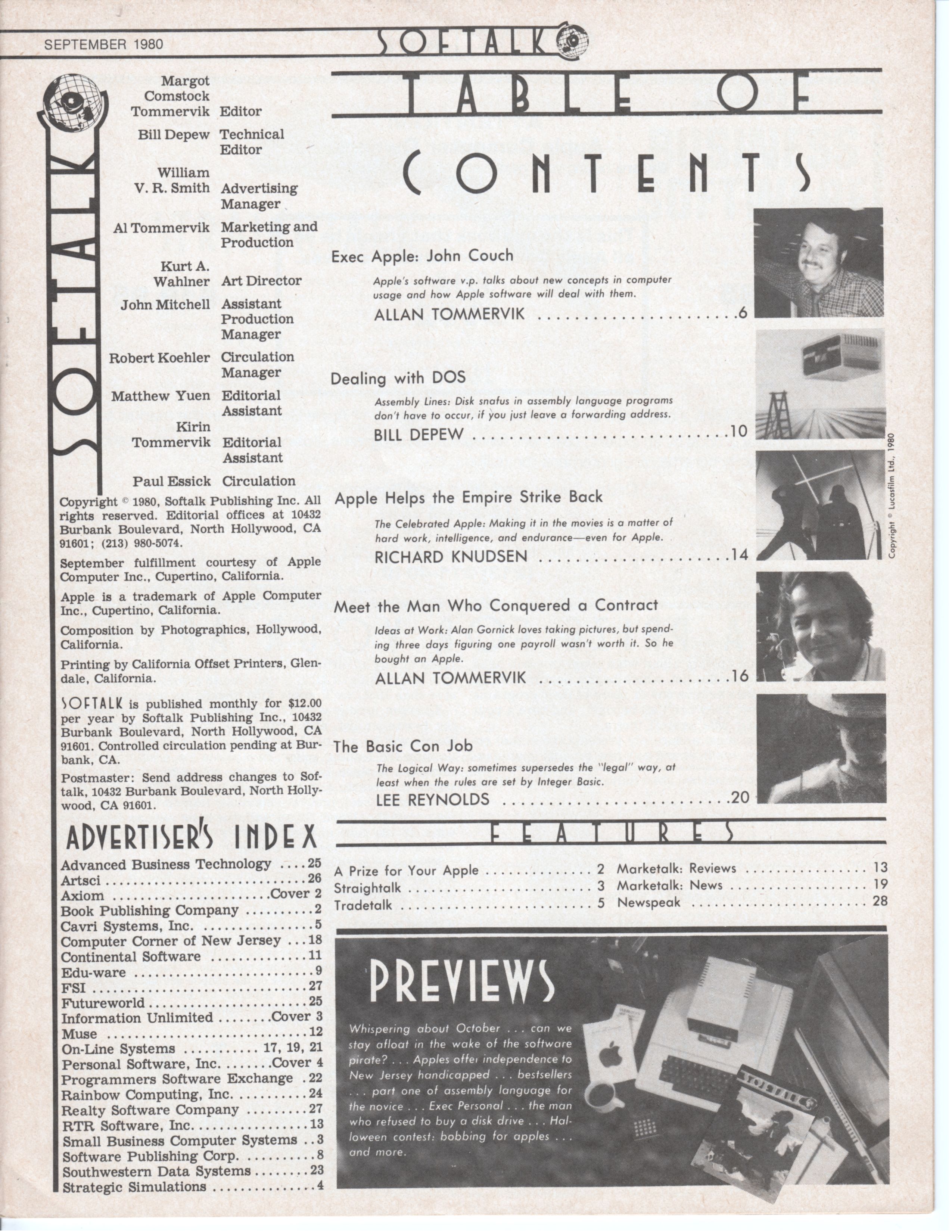 Exec Apple: John Couch. Dealing with DOS. Meet the Man Who Conquered a Contract. The Basic Con Job.