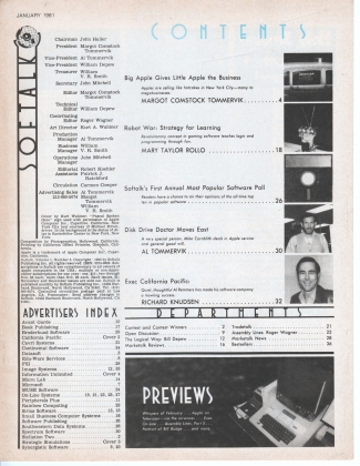 Big Apple Gives Little Apple the Business: Apples are selling like hotcakes in New York City—many to megabusinesses; Robot War: Strategy for Learning - Revolutionary concept in gaming software teaches logic and programming through fun; Softalk's First Annual Most Popular Software Poll - Readers have a chance to air their opinions of the all-time top ten in popular software; Disk Drive Doctor Moves East - A very special person, Mike Cornblith deals in Apple service and general good will; Exec California Pacific: Quiet, thoughtful Al Remmers has made his software company a howling success; plus regular monthly columms, departments, and Bestseller lists, etc.
