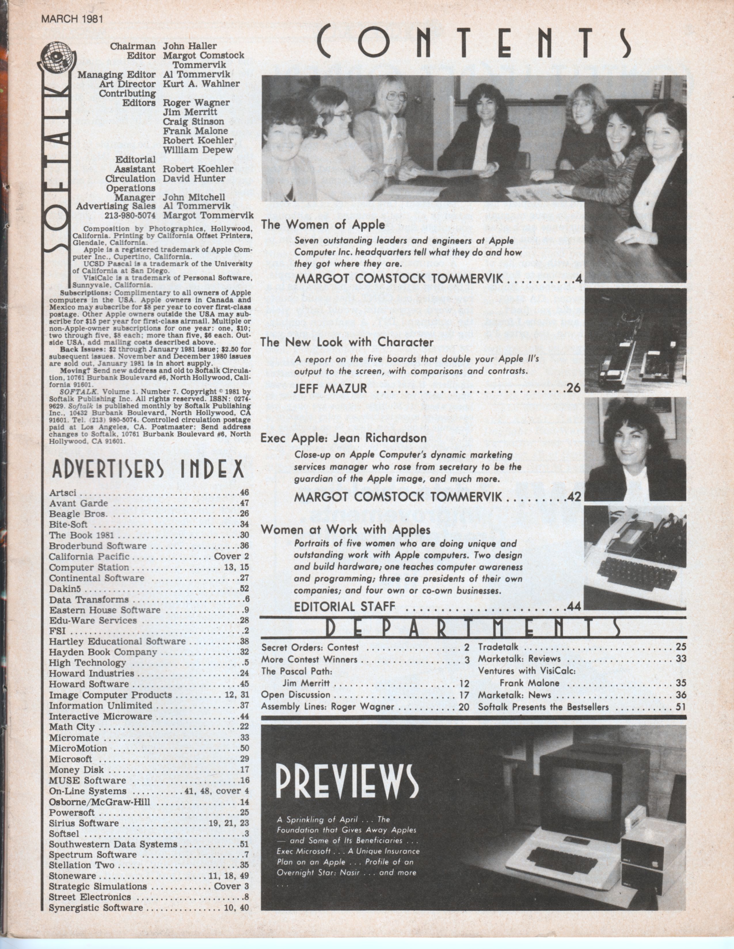The Women of Apple. The New Look of Character. Exec Apple: Jean Richardson. Women at Work with Apples.