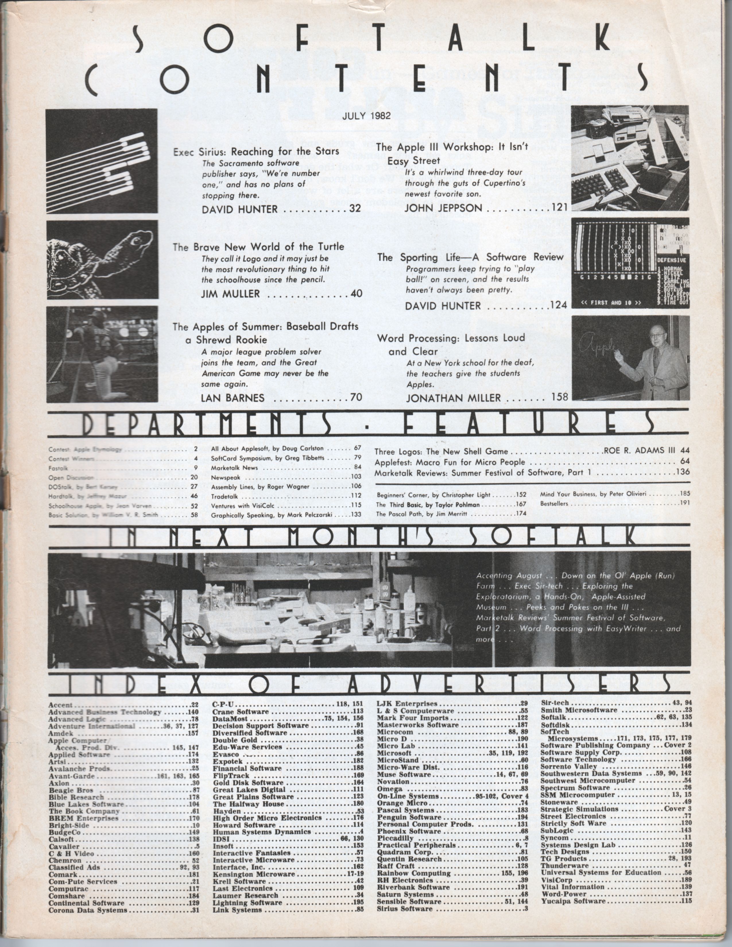 Exec Sirius: Reaching for the Stars. The Brave New World of the Turtle. The Apples of Summer - Baseball Drafts a Shrewd Rookie. The Apple III Workshop: It Isn't Easy Street. The Sporting Life — A Software Review. Word Processing: Lessons Loud and Clear