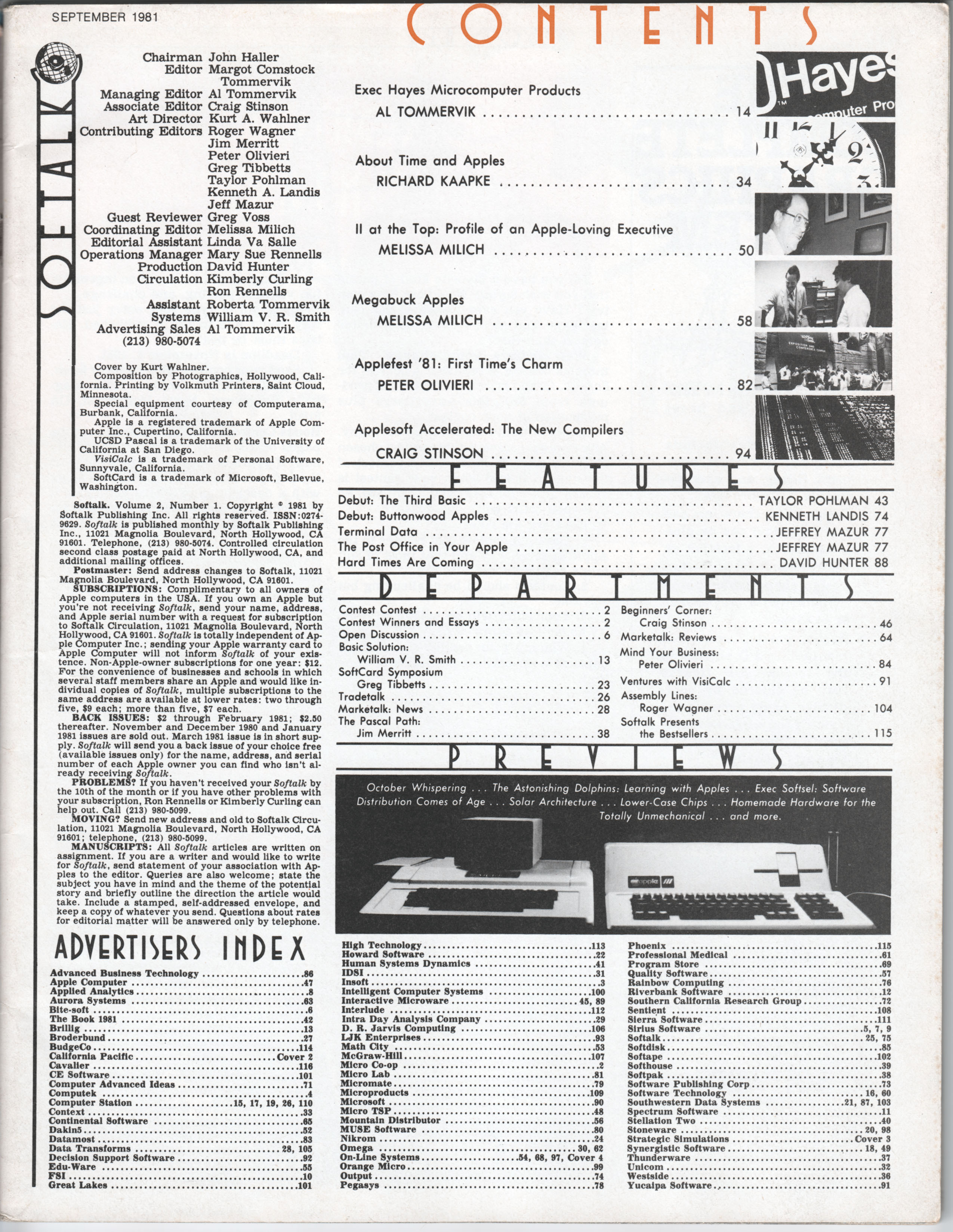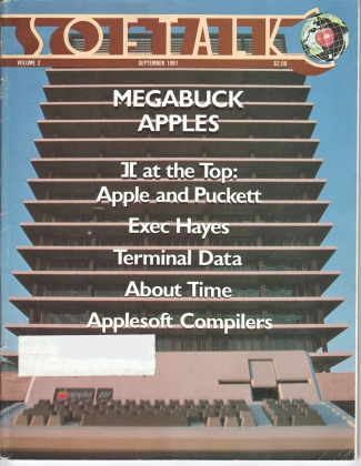 Exec Hayes Microcomputer Products, About Time and Apples, II at the Top: Profile of an Apple-Loving Executive, Megabuck Apples, Applefest '81: First Time's Charm, Applesoft Accelerated: The New Compilers... plus all the regular Features and Departments