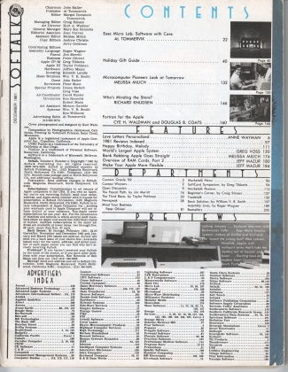 Exec Micro Lab: Software with Care, Holiday Gift Guide, Microcomputer Pioneers Look at Tomorrow, Who's Minding the Store?, Fortran for the Apple... plus the regular Features and Departments